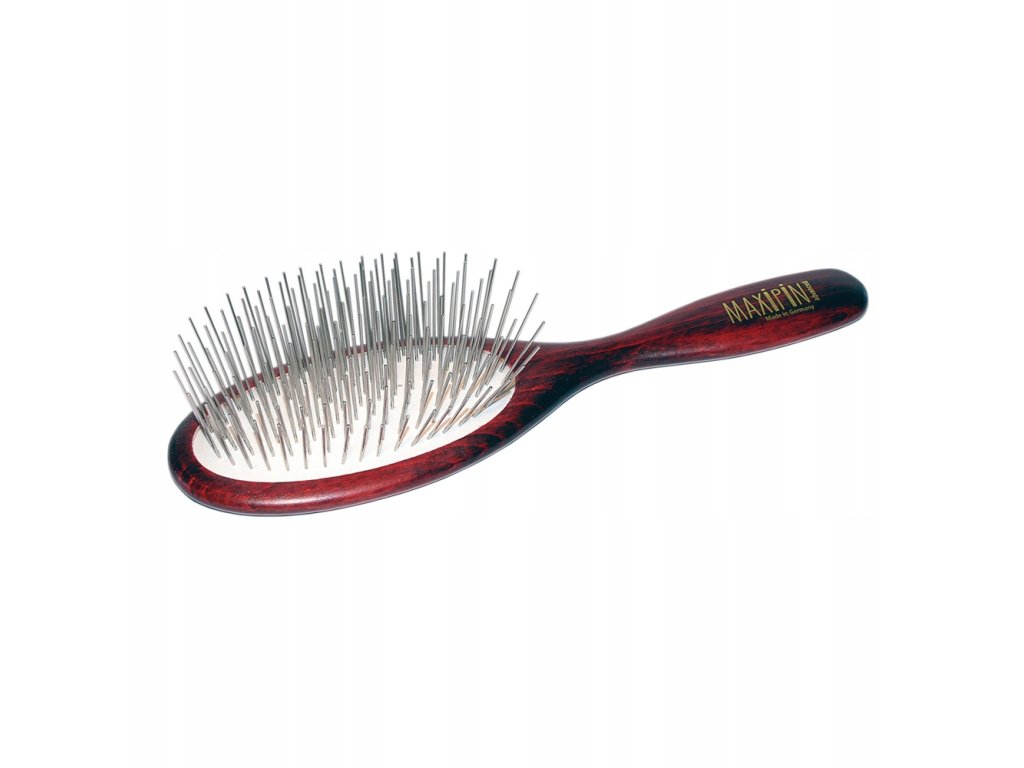 Maxi Pin to wysokiej jakości, ręcznie wykonane szczotki niemieckiej produkcji. Bardzo wygodna i poręczna, model idealny do rozczesywania długiego i ciężkiego włosa u dużych psów. Rękojeść wykonana z naturalnego i lekkiego drewna bukowego.