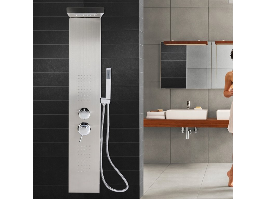 • Trzy sposoby odprowadzania wody, w tym górny strumień, główka prysznicowa i korpus panelu prysznicowego.