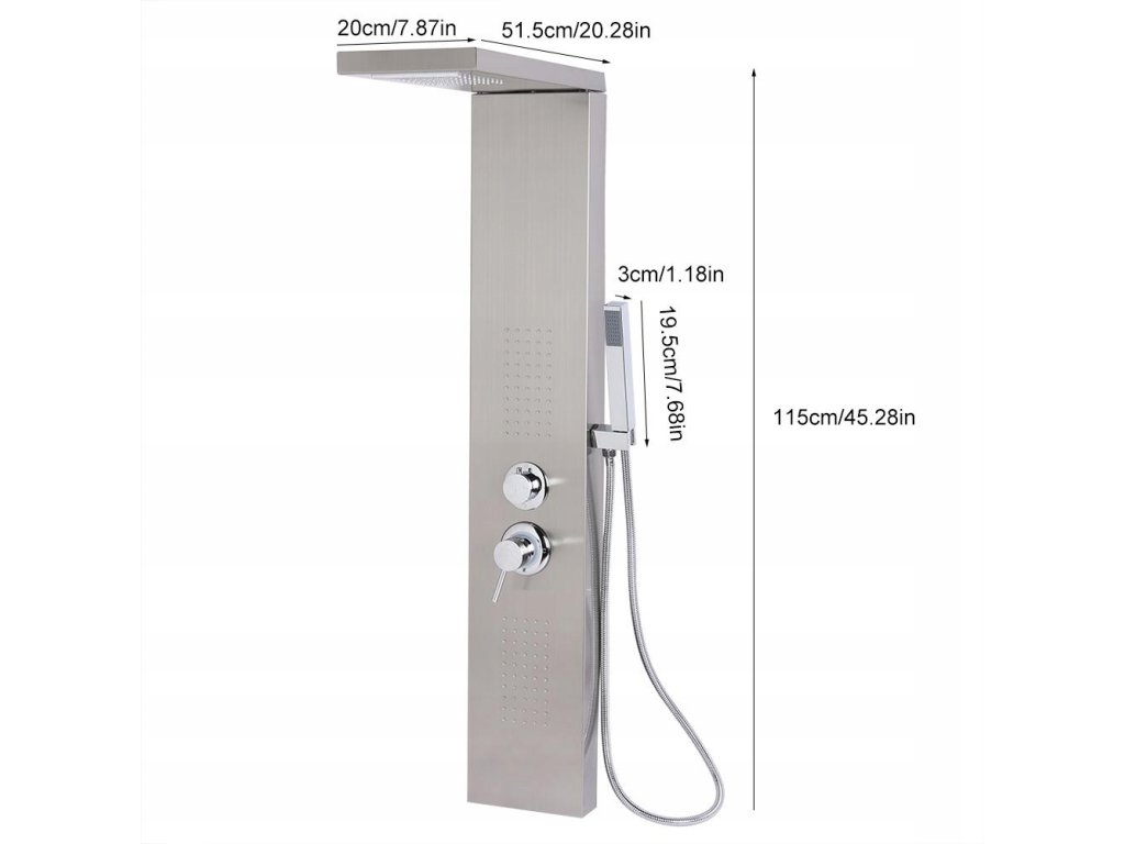 • Rozmiar panelu prysznicowego: ok. 115 x 51,5 x 20 cm / 45,28 x 20,28 x 7,87 cala