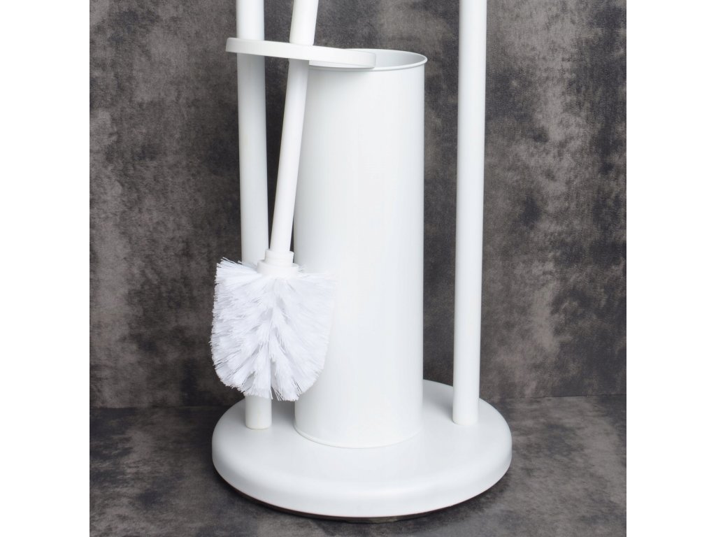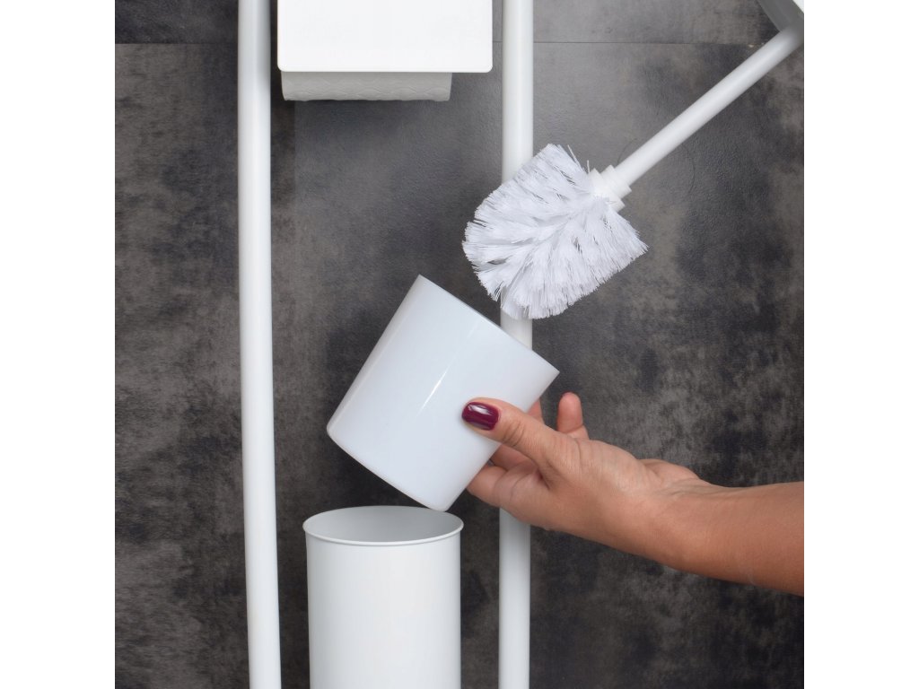 Praktický toaletný stojan 2v1 s toaletnou kefou a držiakom toaletného papiera s chlopňou.