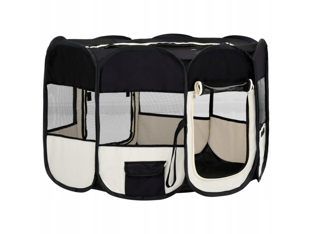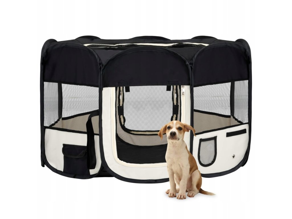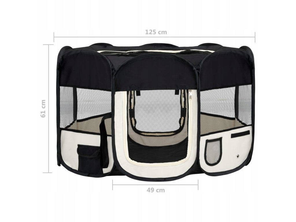 Składany kojec dla psa, z torbą, czarny, 125x125x61 cm