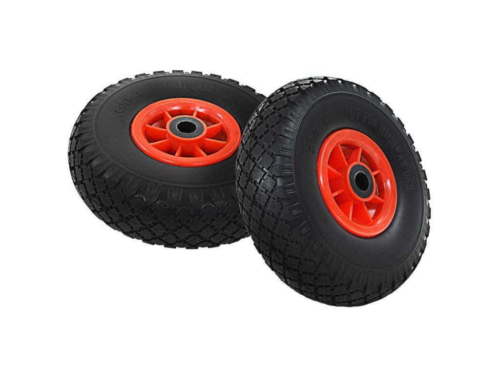 Odporne na przebicia koła zapasowe są idealne do ciężkich prac związanych z transportem ładunków za pomocą wózków ręcznych, wózków transportowych, platform, wózków platformowych, taczek itp., nawet na nierównej nawierzchni.