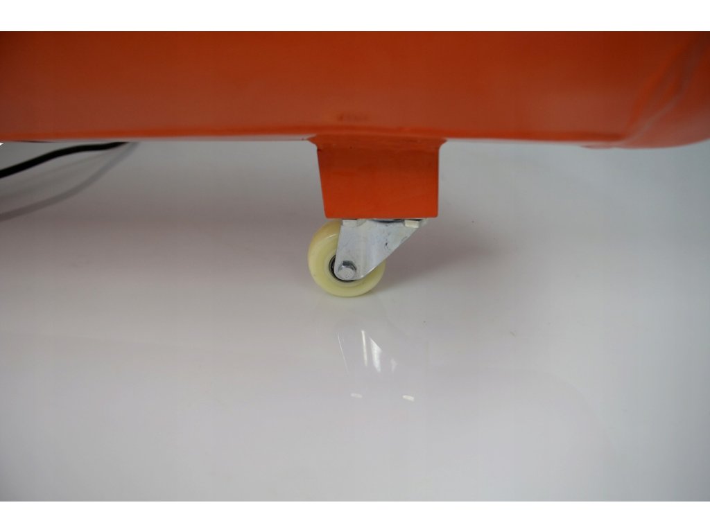 Kompresor wyposażony w kółko skrętne, dzięki takiemu rozwiązaniu kompresor jest zwrotny oraz łatwy w transporcie. Co warte uwagi kółko jest zamontowane na 4 śruby wraz z podkładką sprężysta - mniejszy hałas, większa stabilność oraz trwałość.