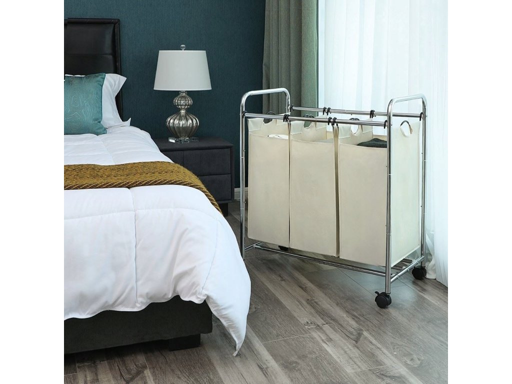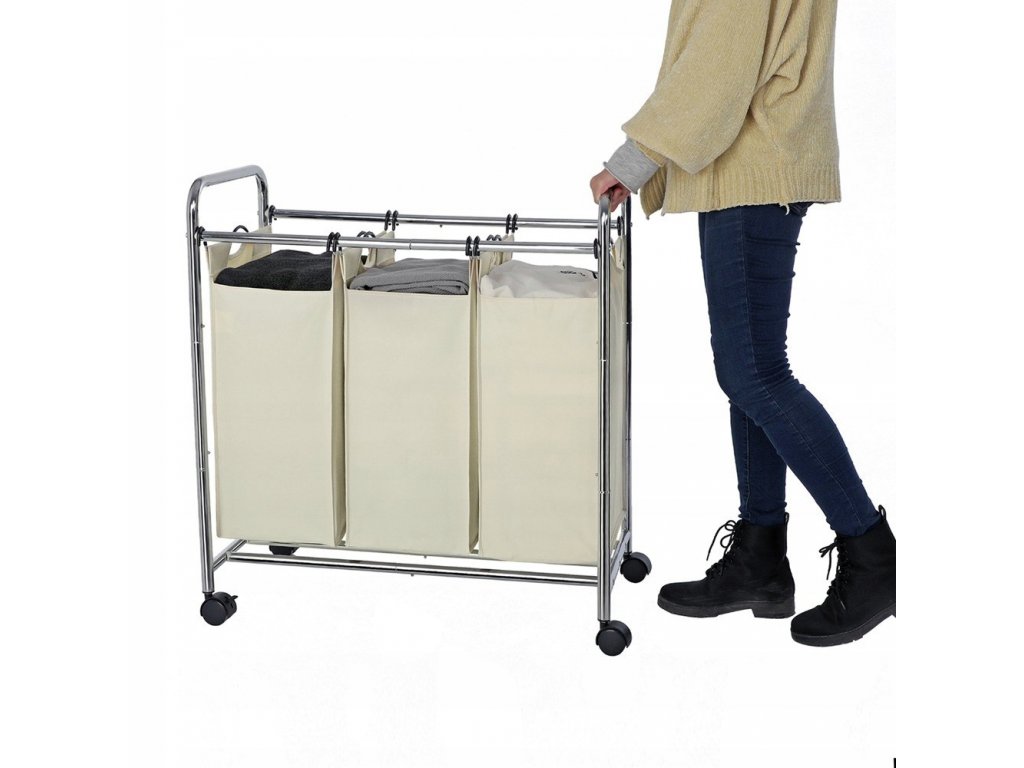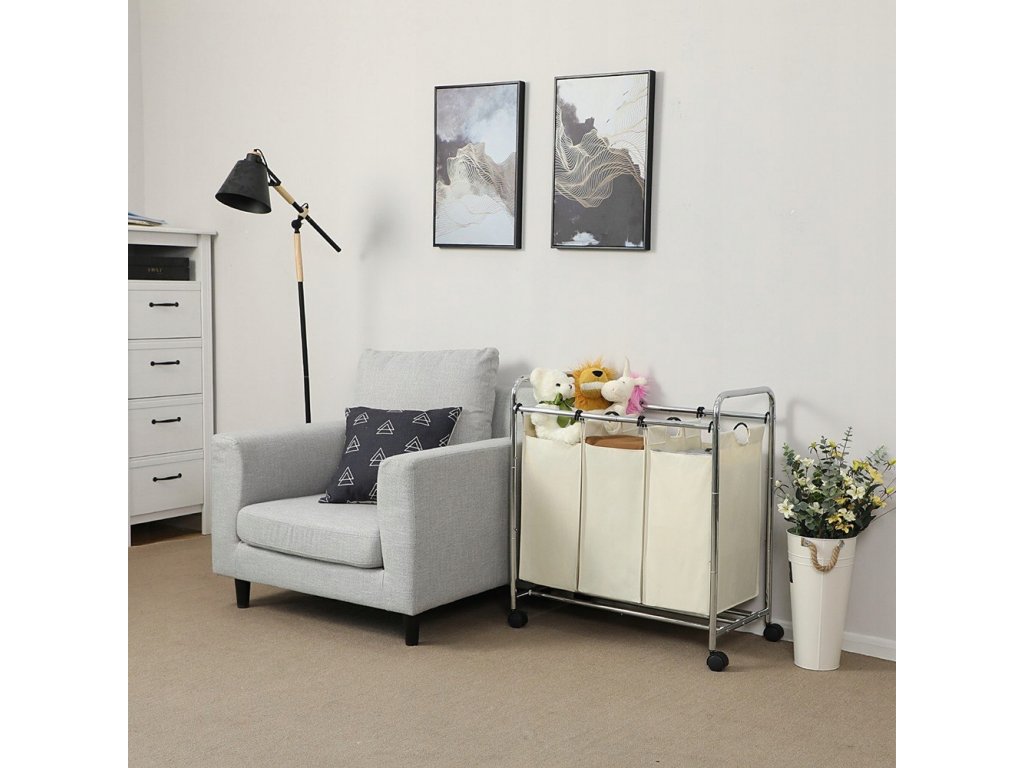 Kôš na prádlo na kolieskach, 3 priehradky 77x41x81,5 ecru