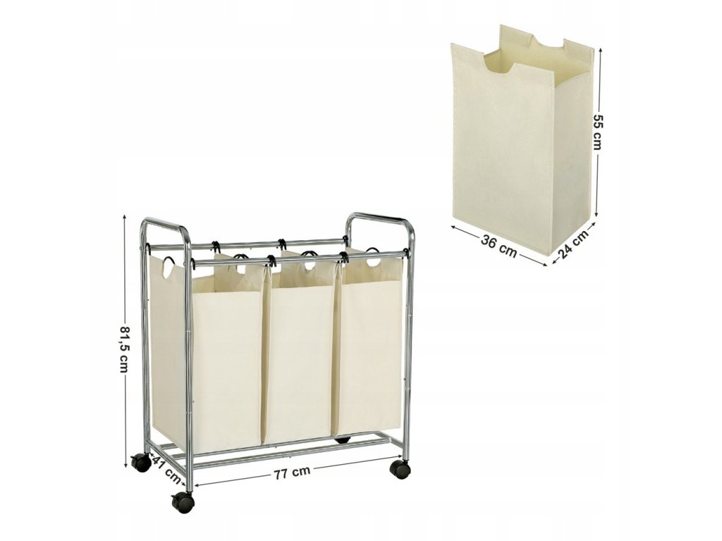 Kosz na pranie na kółkach 3 komory 77x41x81,5 ecru