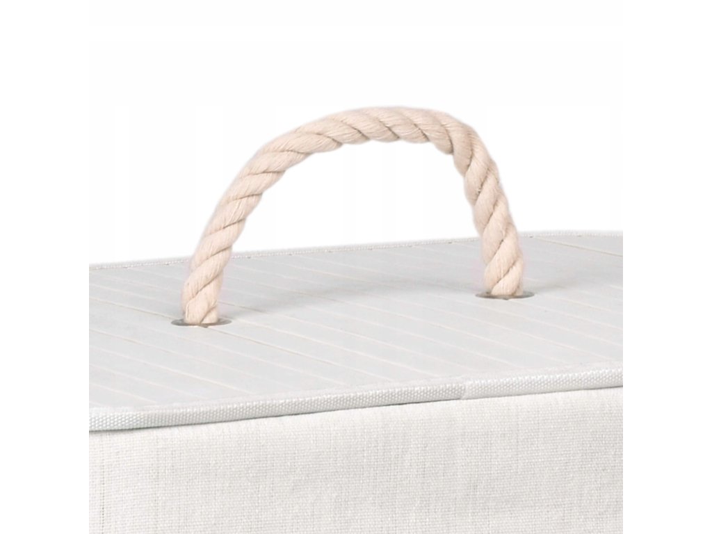 Pojemnik zamykany jest pokrywą z rączką z grubej liny, dzięki czemu zawartość kosza nie stanowi nieeleganckiego widoku, nie wspominając już o nieprzyjemnych zapachach brudnej odzieży. Sam pojemnik posiada po bokach dwa uchwyty z liny, które ułatwiają przenoszenie.