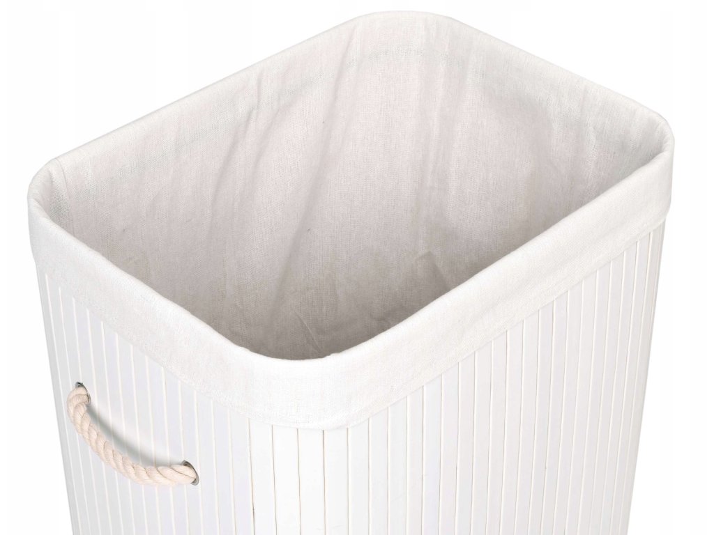 Wykonany z naturalnego bambusa kosz do gromadzenia brudnej odzieży przed praniem, posłuży jako pojemnik na zabawki lub do przechowywania innych przedmiotów używanych w gospodarstwie rodzinnym. Prosty i naturalny wygląd sprawia, że pojemnik wkomponuje się w każde pomieszczenie. Zaletą kosza bambusowego jest niewątpliwie elegancki wygląd, przeważający szalę nad zwykłymi pojemnikami z tworzywa. Kosz wyposażony został w wewnętrzny wyjmowany wkład z lnu, który nie pochłania wilgoci i nieprzyjemnych zapachów. Konstrukcja pojemnika jest stabilna i sztywna.