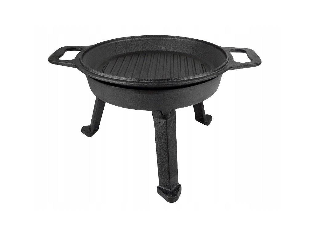 Patelnie można położyć na stojaku i grillować bezpośrednio na ogniu. Żeliwo nie wchodzi w reakcje z żywnością co gwarantuje najwyższą jakość posiłków.