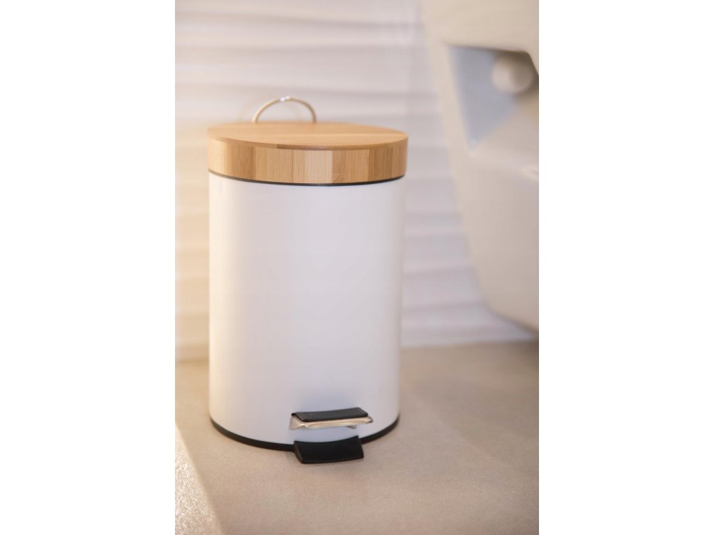 Kovový moderný bambusový kôš 3l biely