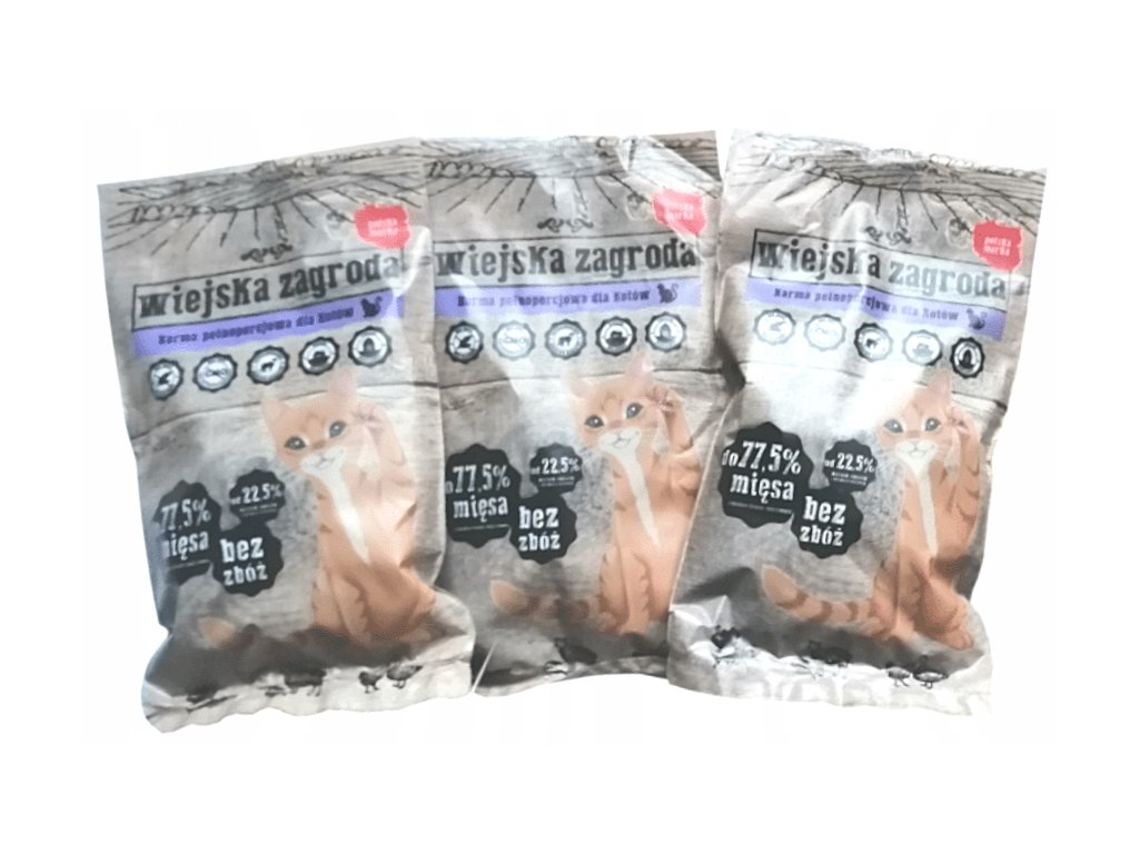 Zestaw dotyczy 3szt x50g próbki Wiejska Zagroda 50g Dla kota - Smak wysyłamy losowo spośród: