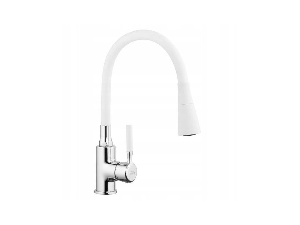 Bateria zlewozmywakowa POGO  z elastyczną białą wylewką