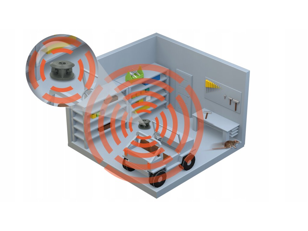 Odstraszacz 3D COMBOSONIC emituje ultradźwięki, dźwięki o wysokiej częstotliwości niesłyszalne przez ucho ludzkie ale dezorientujące zwierzęta w pomieszczeniach.