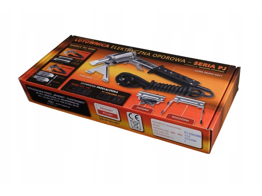 Solidna lutownica polskiej produkcji. Przeznaczona do pracy ciągłej. Ze względu na dużą moc polecana do zastosowań w mechanice i pracach blacharskich. Opakowanie zawiera kompletną lutownicę z grotem oraz podpórkę.