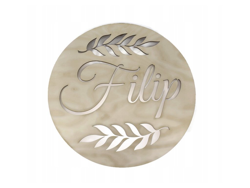 LED nočná lampa s menom dieťaťa, 30 cm, drevo