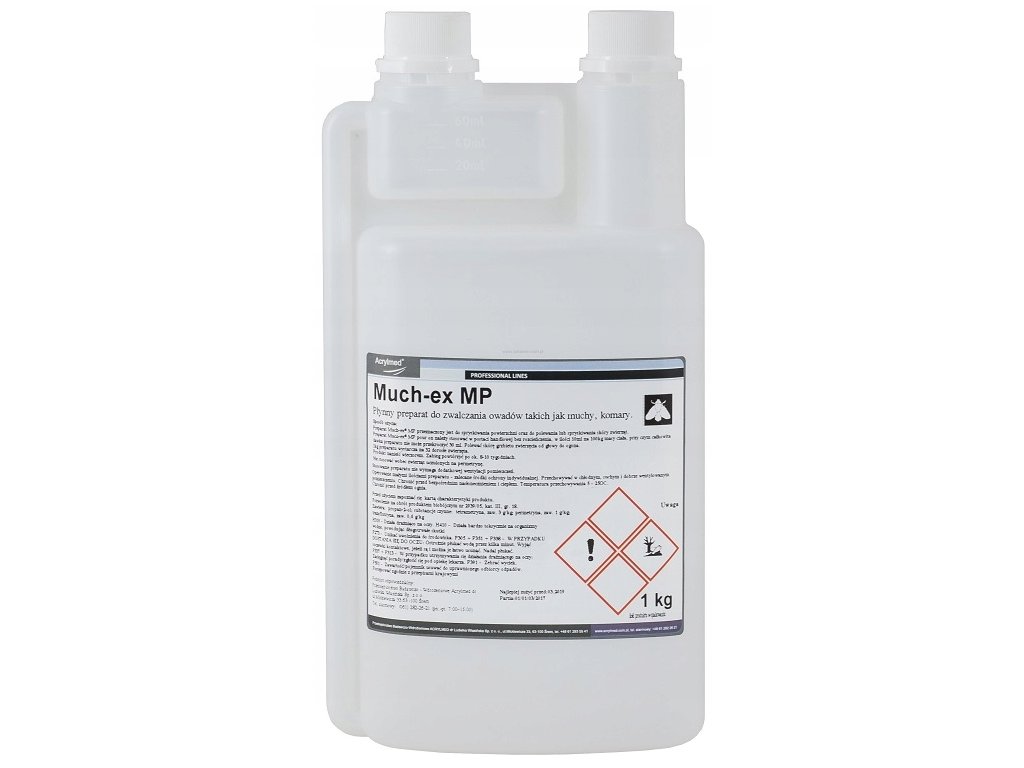 Much-ex MP to płynny środek do polewania zwierząt w celu odstraszania i zwalczania owadów takich jak muchy, gzy, meszki oraz komary.