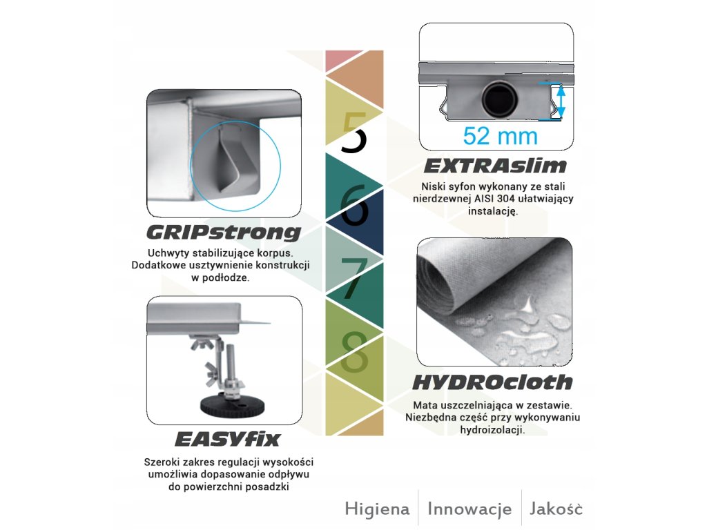 • regulácia pre perfektné vzhľadom k podlahovej vpuste