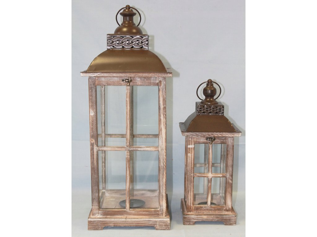 Lucerna, lampáš, drevený, bronzový set 2 retro