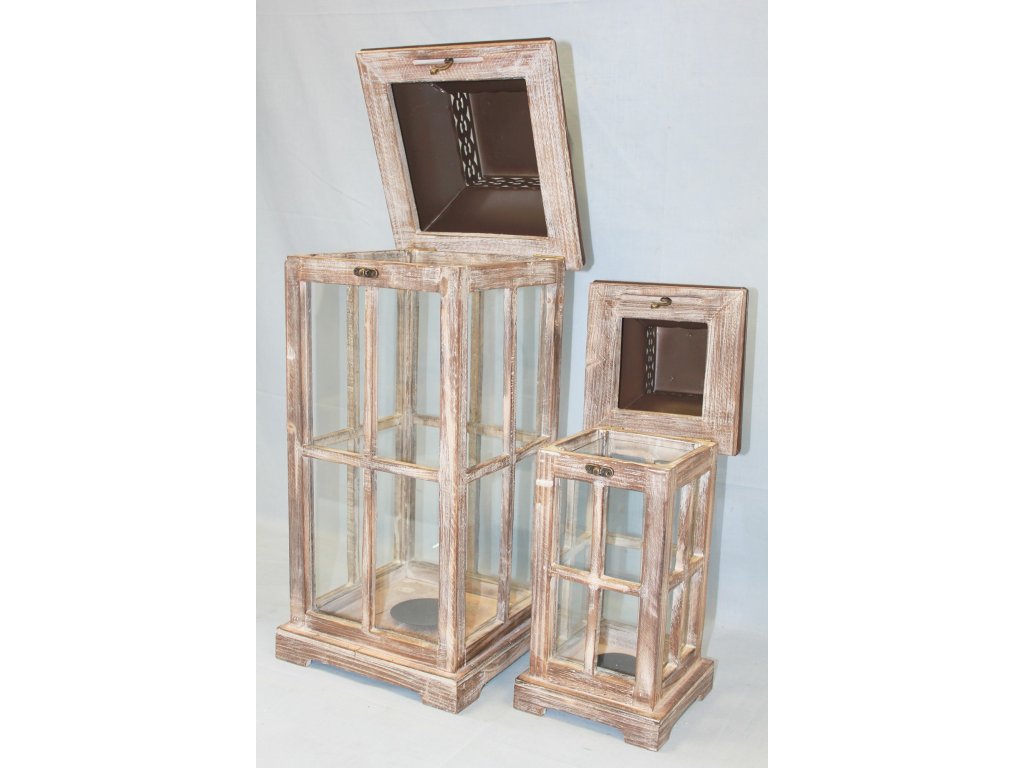 Lampiony drewniane wykonane z drewna z metalowym daszkiem,