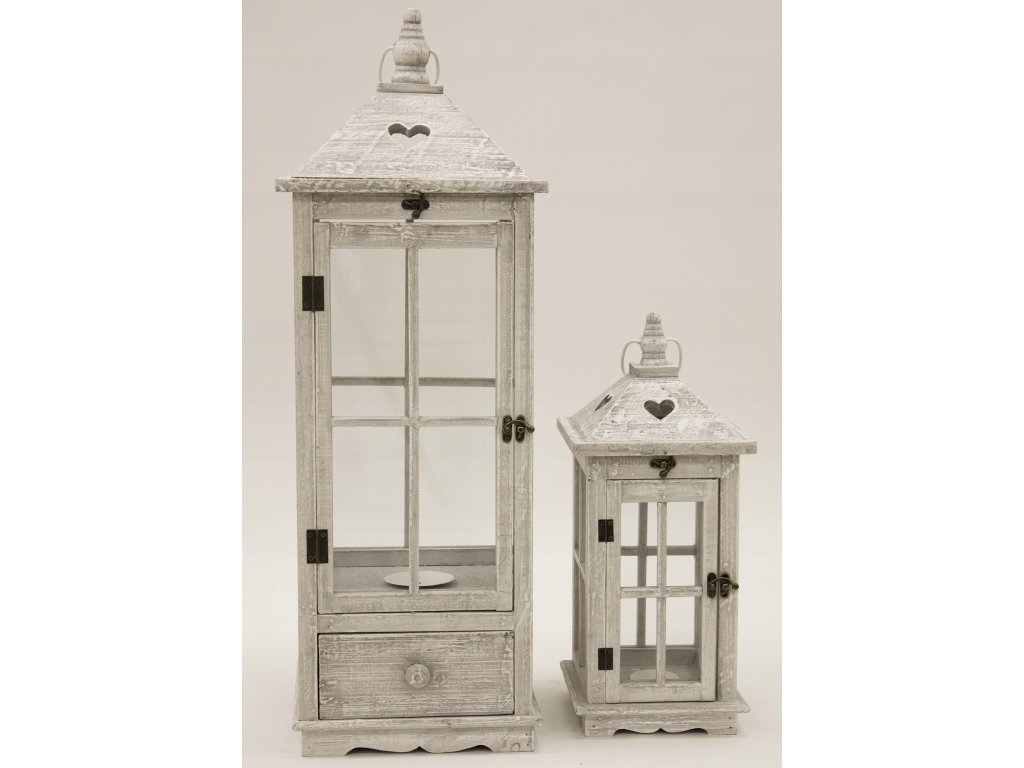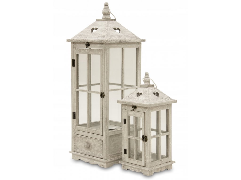 Lucerna, lampáš, drevený, sivý set 2 retro