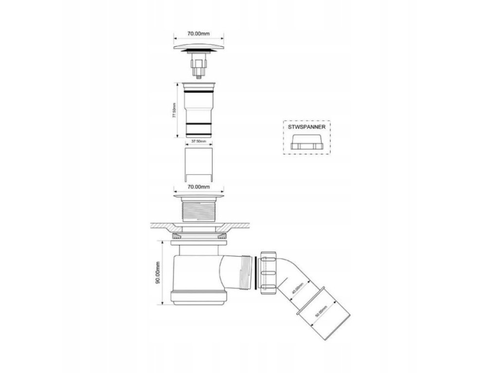 • Odpoveď & # 322; y sifón & # 347; priemer: 52 mm