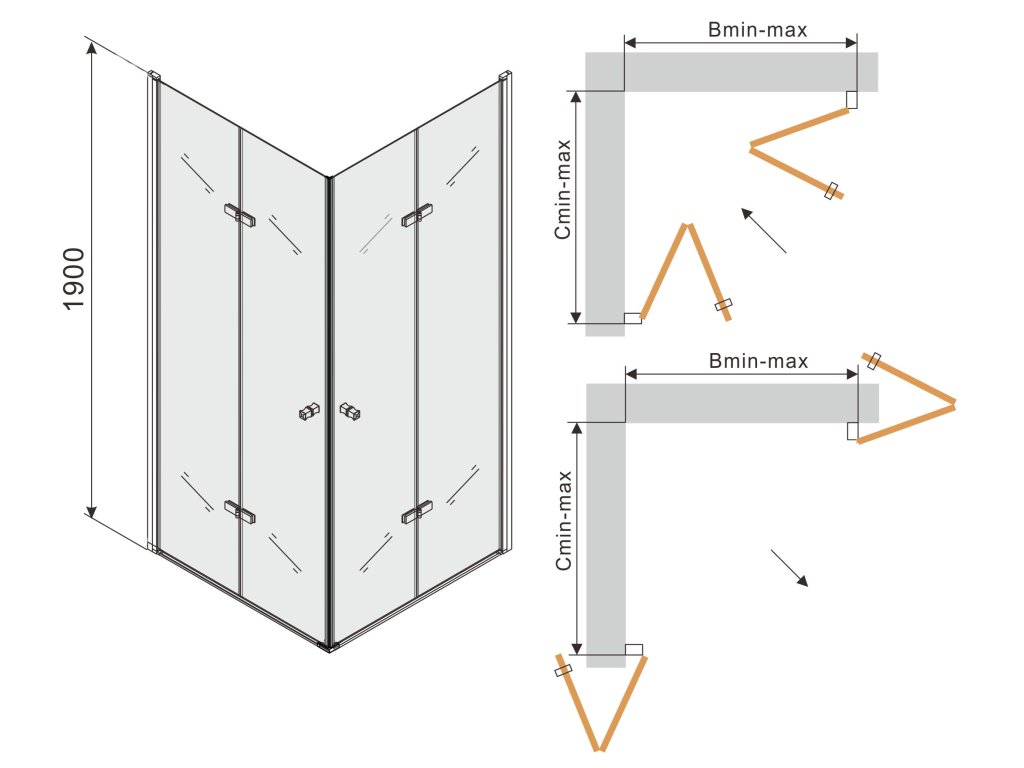 univerzálne Sprchové dvere Mexen Lima Duo sklopné, sklapacie 90x80 cm