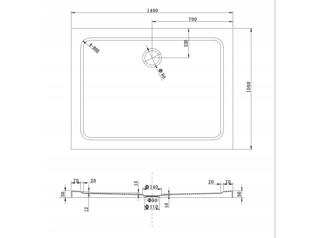 MEXEN SLIM ZÁSOBNÍK OBDĹŽNIKOVÁ 140 x 100 + SIFÓN
