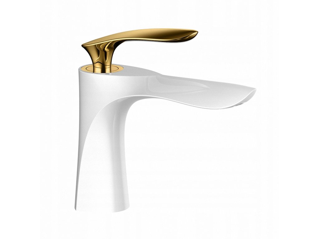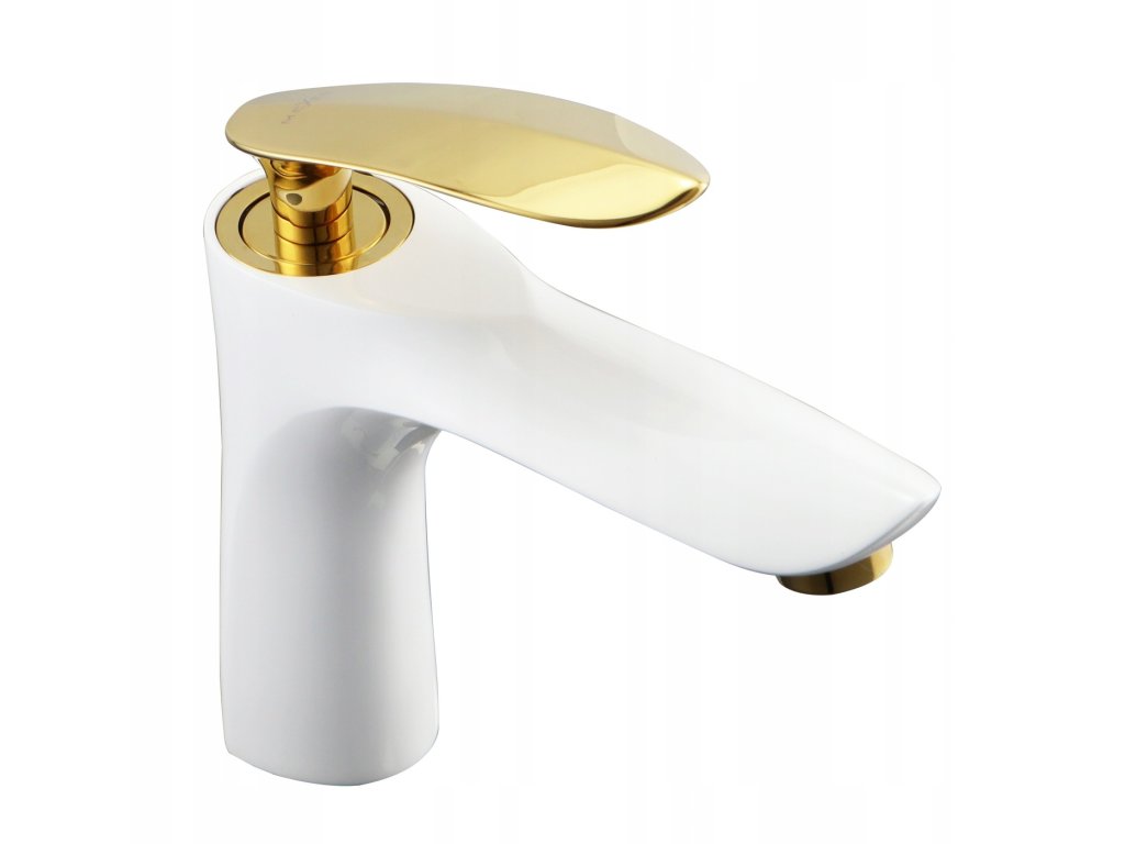 Mexen Lily - Bateria umywalkowa niska biało-złota