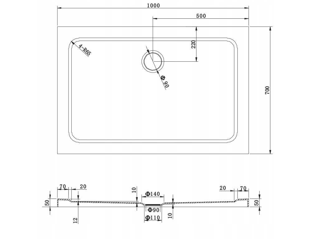 MEXÉNOVÝ Štíhly obdĺžnikový sprchový žľab 100 x 70 cm + SIFÓN