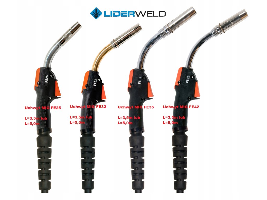 Dostępne modele i rozmiary chłodzonych gazem uchwytów spawalniczych MIG/MAG z serii FE: 200 A, 250 A, 270 A, 320 A, 350 A i 420 A, o długości 3,5 m lub 5 m. Te podłączane przez eurozłącze modele wyposażone są w elastyczne zestawy kablowe i mają solidną konstrukcję oraz zintegrowany, komfortowy uchwyt, a ponadto charakteryzują się niezrównanym wyważeniem, co zapewnia wygodę spawania na co dzień.