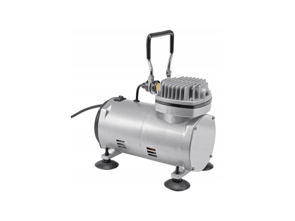 Rozwiązanie do malowania aerografem i pompowania opon rowerowych i piłek. Wygodny do przenoszenia dzięki niskiej masie, uchwytom i gumowym stopkom. Cichy, jednocylindrowy i bezolejowy.