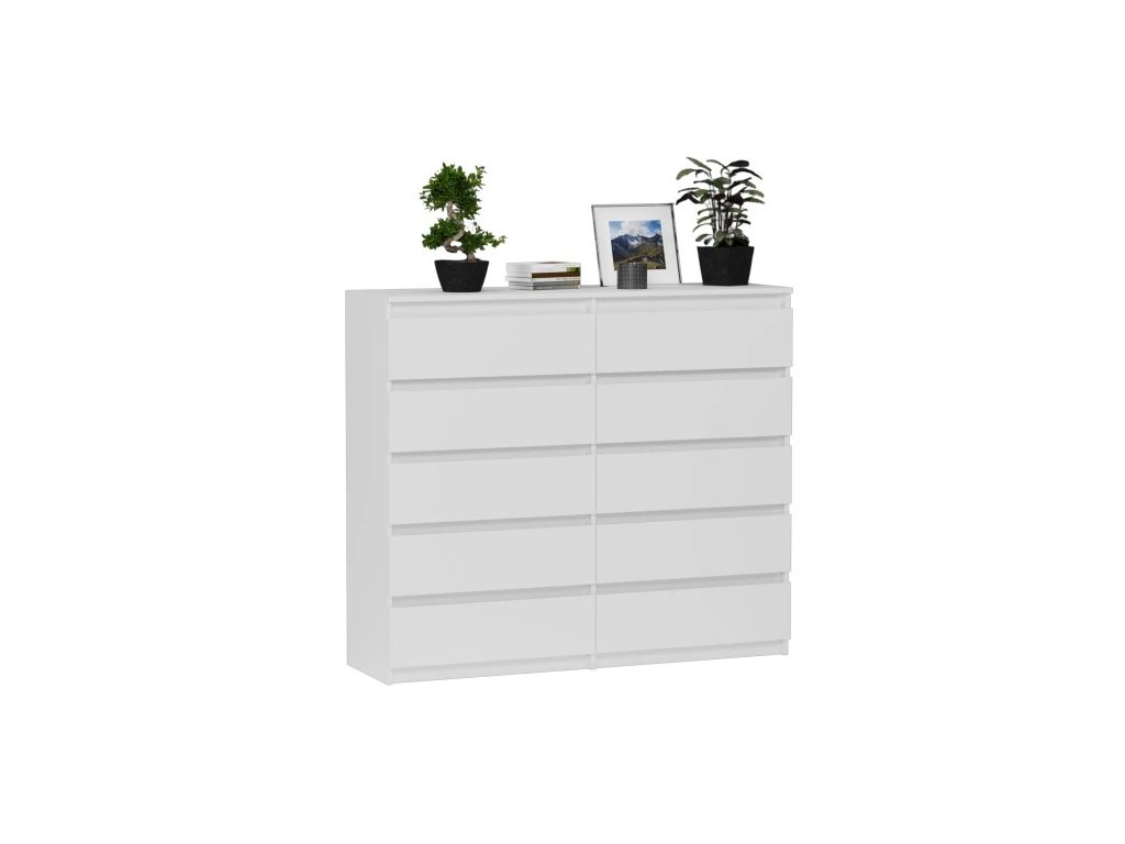 Moderná KOMODA 140 CM SKRINKA 10 ZÁSUVIEK BIELA