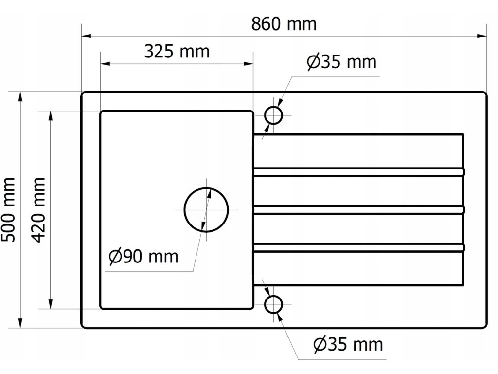 • Otwory w zlewozmywaku: 2,