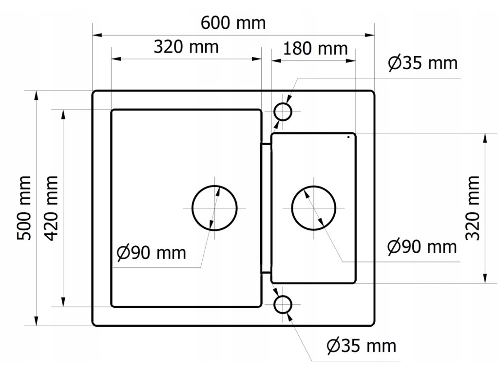 • Wymiary zewnętrzne: 600 x 500 mm,