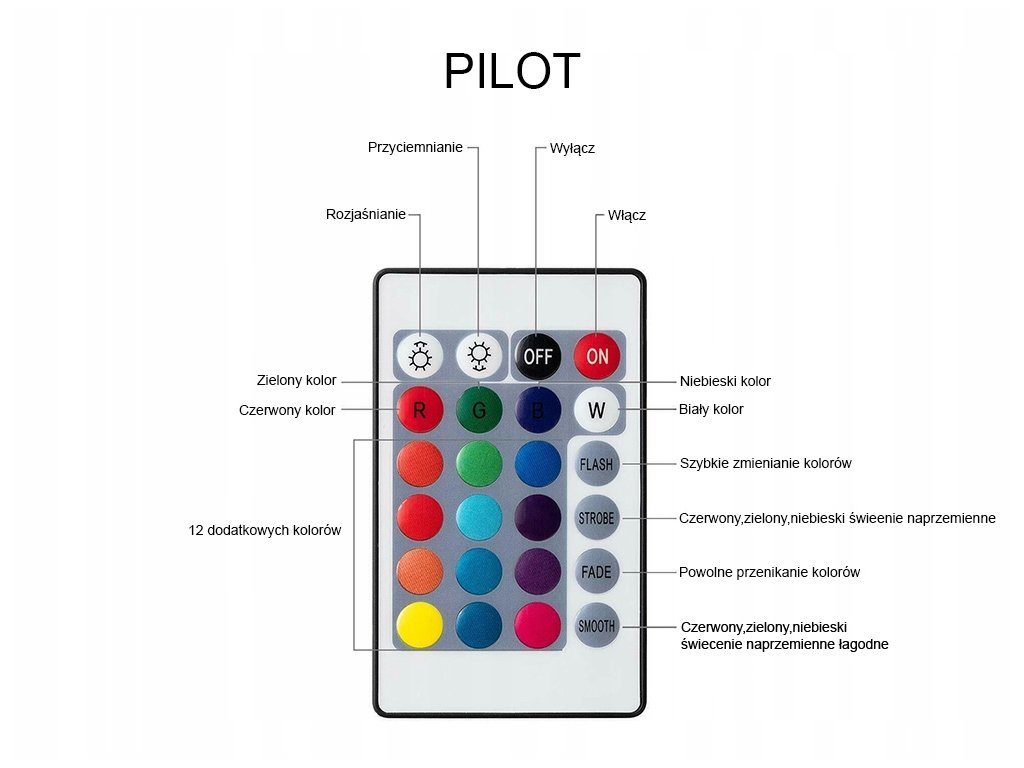 • Cztery różne formy zmiany koloru ( flash, strobe, fade, smooth)