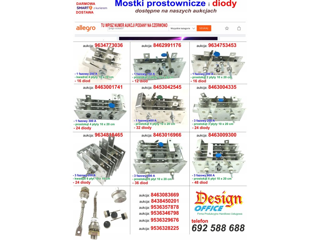 Posiadamy także mostki 1 fazowe oraz mostki o prądach większych niż 200A