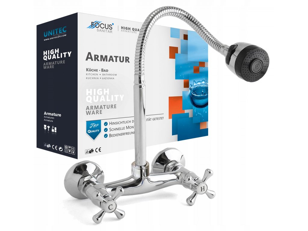 VYSOKO KVALITNÁ NÁSTENNÁ BATÉRIA S CHRÓMOVÝM RETRO DIZAJNOM S FLEXIBILNÝM VÝTOKOM
