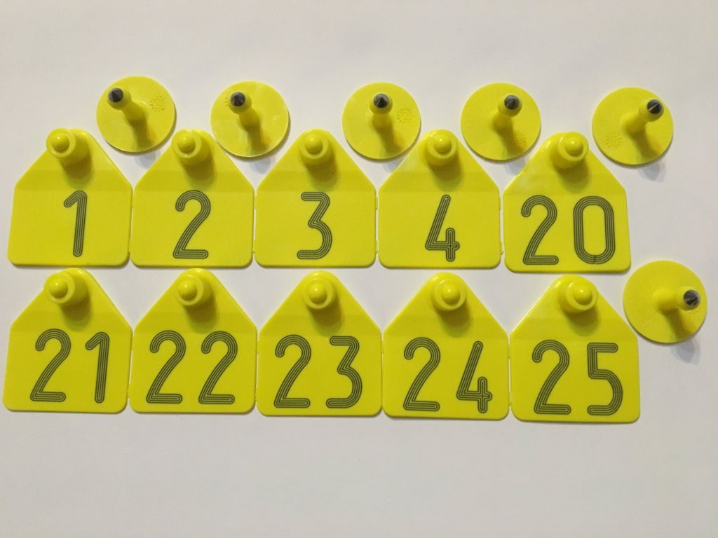 Na iných aukciách sú oficiálne náušnice s číslom farmy, ušnými značkami a ušnými značkami.