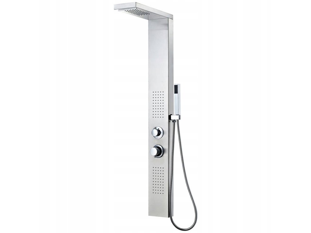 Sprchový panel je vyrobený z odolného nerezovej ocele s brúseným povrchom a má pekné, štvorcový tvar. Má štyri funkcie :. Dažďová sprcha, vodopád a sprchové trysky, ktoré môžu byť vybrané pomocou ovládacieho gombíka