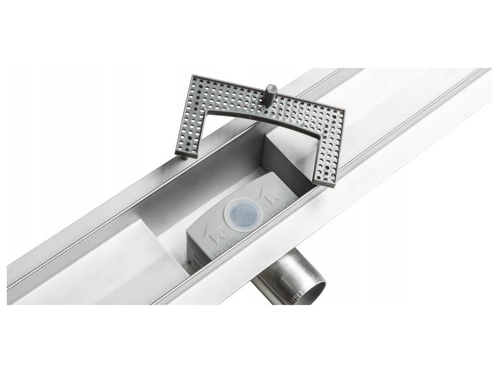 odliv vyrobené výhradne z nerezovej ocele AISI 304 s hrúbkou 1,2 mm (maska ​​- hrúbka 1,5 mm). Low trap oceľ s čistením z vrcholu. Malá montážna výška činí obmedzenie používania kanalizácie kvôli hrúbke podlahy takmer neexistujú.
