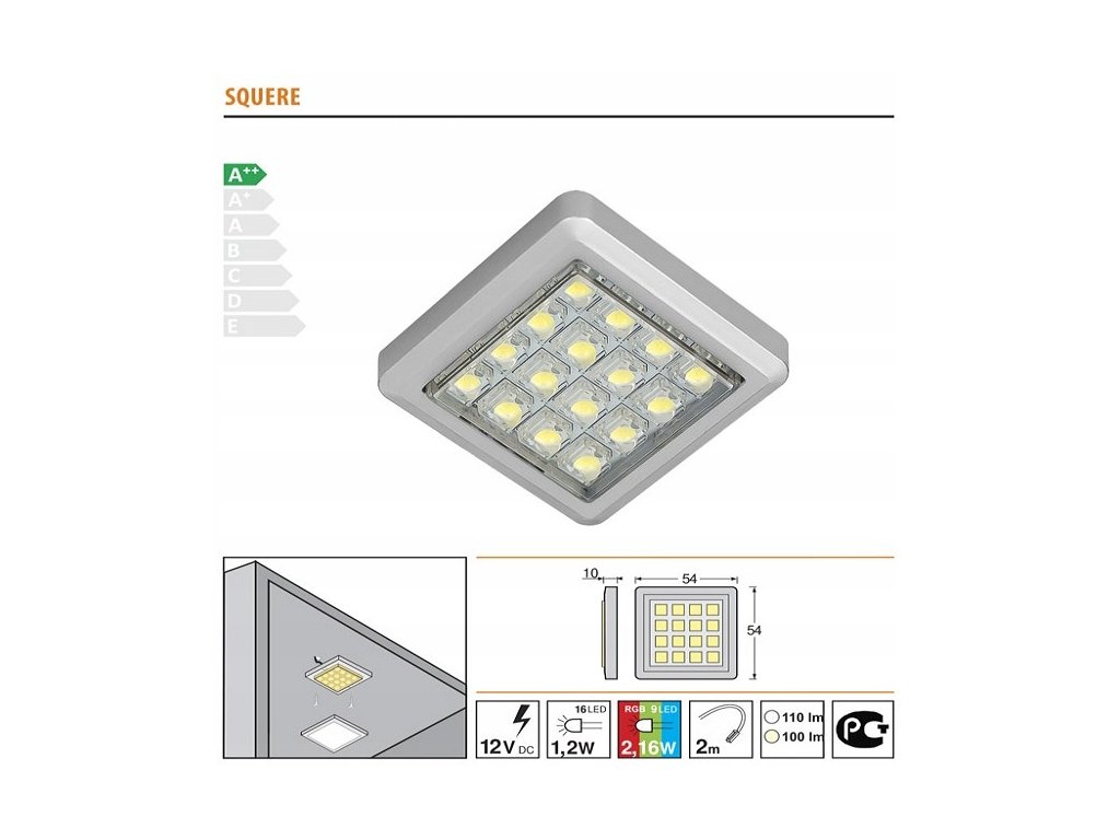 • Wymiary lampy: dł. 54mm; szer. 54mm; wys. 10mm