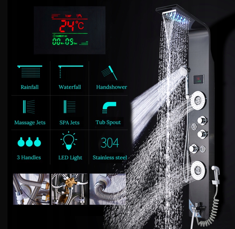 Krásny a moderný multifunkčný sprchový solárny panel LED osvetlením. Ak chcete dokončiť sprchový panel Obsahuje najvyššej KVALITY s nerezovej Rate, mosadz a Vysoko kvalitný materiál, ktorý je veľmi lahko cistit. Solárny panel dazdova sprchou a vaňou pripravené im zostaviť obdržaní. Sada Obsahuje vsetko čo to Nutné pouzite panel. Panel je vybavený ventilov systém, ktorý umožňuje kontrolu presné Ako sily a teploty Prúdy, Rovňák Ako spôsobom, ktorý prudit von. Panel vyzerá veľmi elegantne a exkluzívne. Urobila Zapad do prostredia a ovplyvňuje vzhlad Celý Kúpeľná. Sprchový solárny panel dazdova sprchou a bidetom VAM skvelý zazitok pre mnoho rokov.