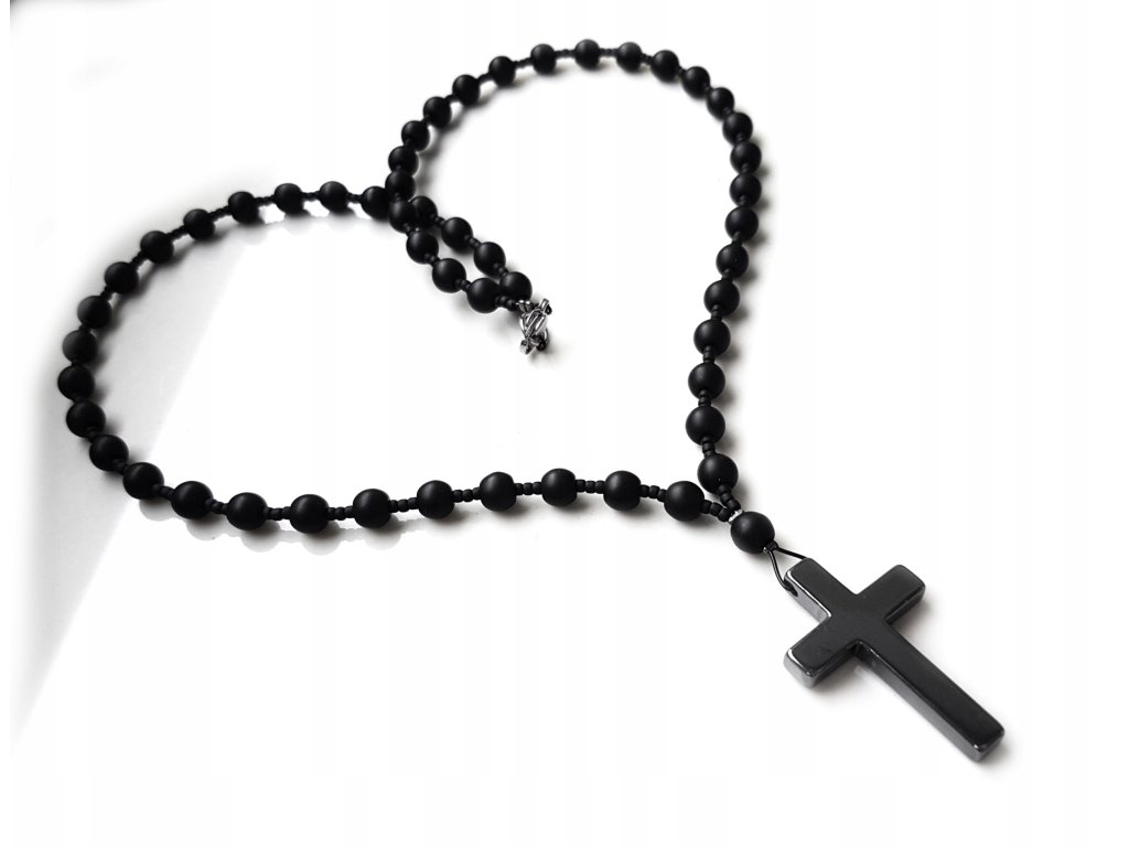 Pánsky náhrdelník v štýle ruženca ONYX hematit 60cm VYPR