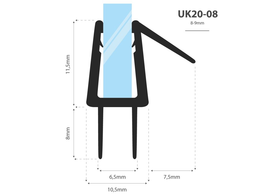 univerzálnosť: Tesnenie sprchovej kúty UK20 sa hodí na sklo 8-9 mm.