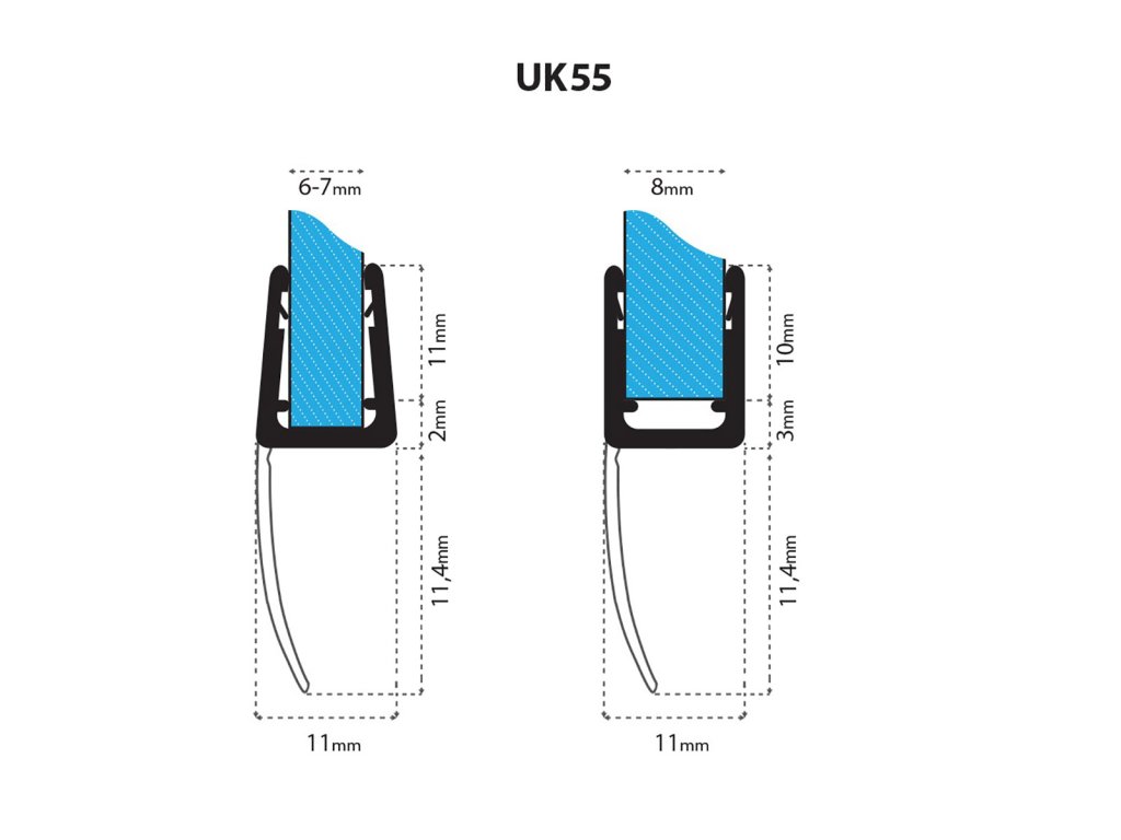 univerzálnosť: Tesnenie sprchovej kúty UK55 sa hodí na sklo 6, 7, 8 mm.