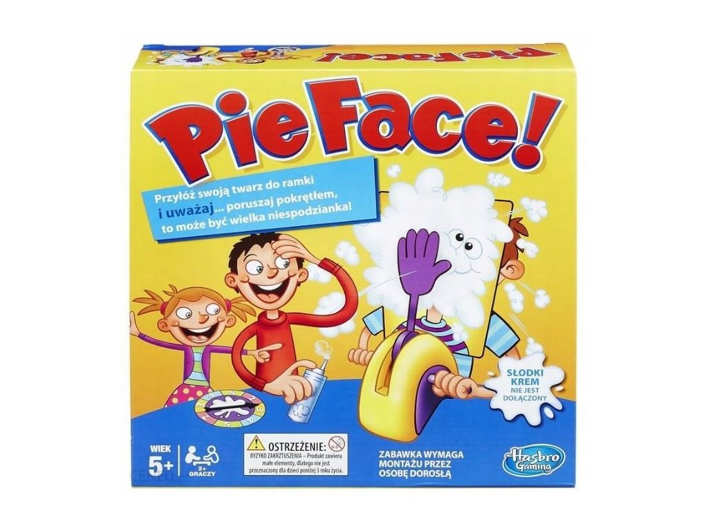Ekscytująca gra Pie Face jest wypełniona zabawą i dozą niepewności, bo ktoś z pewnością się tutaj pobrudzi! Wystarczy umieścić pyszną bitą śmietanę lub mokrą gąbkę na rączkę miotacza i zacząć przekręcać pokrętło. To może wystrzelić w każdej chwili, więc trzymajcie kciuk, żeby Was to ominęło! Zdobywasz punkty za każdym razem, kiedy uda Ci się przekręcić pokrętło i nie dostać w twarz, a ten, który zdobędzie 25 punktów wygrywa. Podejmij ryzyko i baw się świetnie z niezapomnianą grą Pie Face.