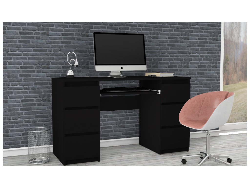 Biurko z serii modern świetnie sprawdzi się w domowych pokojach jak i w biurze. Komfortową przestrzeń do pracy zapewnia przestronny blat, a sześć podręcznych szuflad pozwala na wygodne składowanie zeszytów, oraz książek.