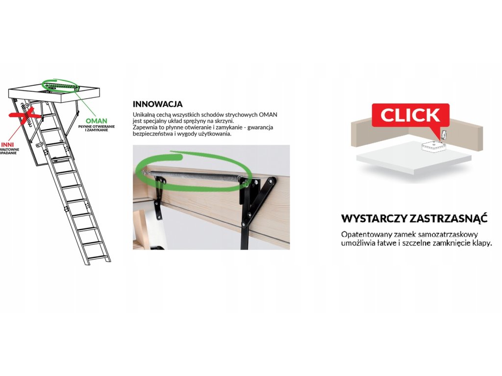 SCHODY STRYCHOWE EXTRA 46mm 70x110 PORĘCZ+LISTWA