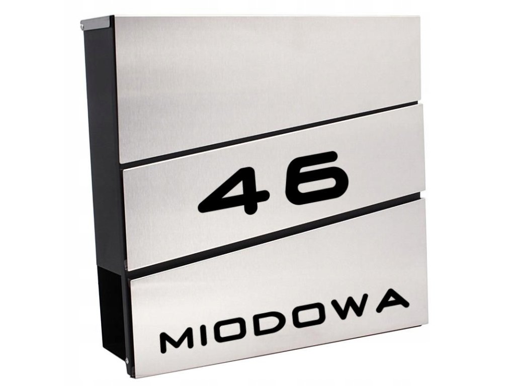 Nowoczesna skrzynka wykonana ze stali szlachetnej z tubą na gazety. W zestawie dwa klucze oraz kołki rozporowe wraz ze śrubami, niezbędne do montażu skrzynki. Front skrzynki wykonana ze stali nierdzewnej.