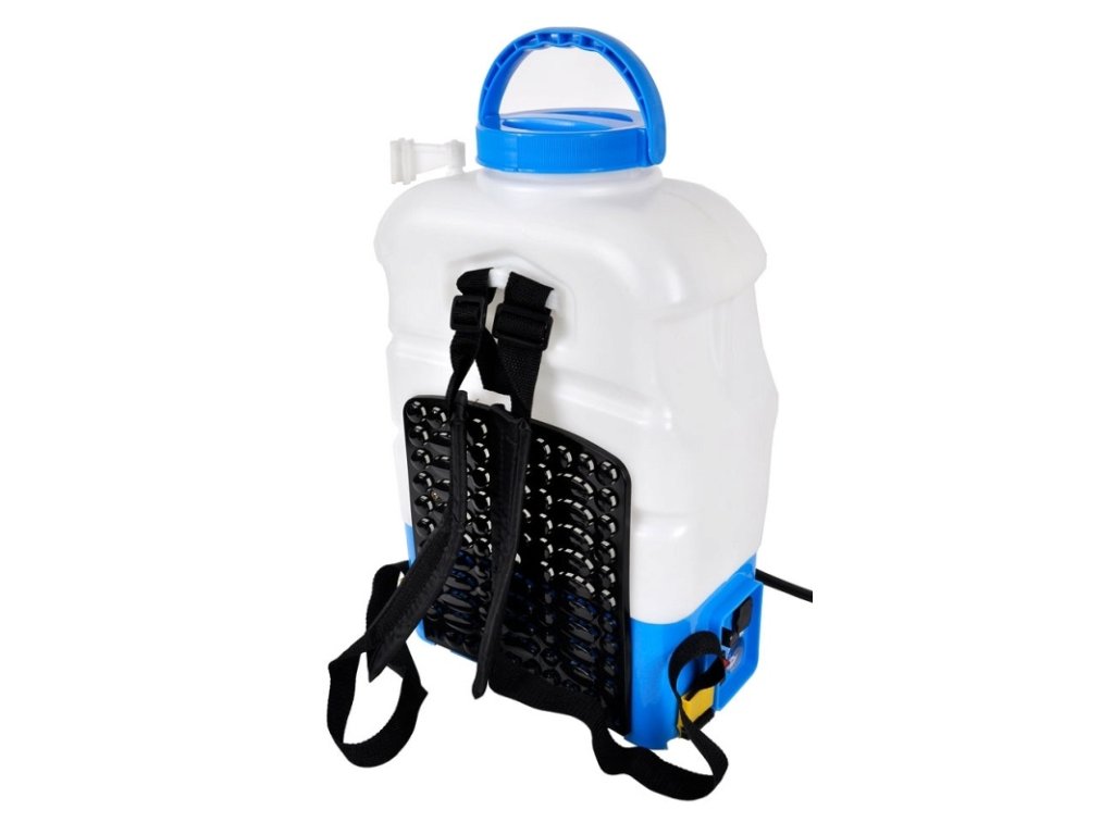 Elektryczny opryskiwacz akumulatorowy z pojemnym zbiornikiem do pracy przy ochronie upraw, roślin, sadów, odkażaniu budynków hodowlanych. Silnik akumulatorowy pozwala na zmniejszenie wysiłku podczas oprysków w porównaniu do opryskiwaczy ręcznych. Pompa membranowa została wyposażona w zawór bezpieczeństwa, który automatycznie ogranicza ciśnienie w układzie. Łatwy w czyszczeniu i montażu potrójny filtr wewnętrzny zapobiega zapychaniu się dyszy. System ostrzegania przed niskim poziomem napięcia chroni akumulator przed uszkodzeniem. Kompaktowa budowa zapewnia komfortową pracę.