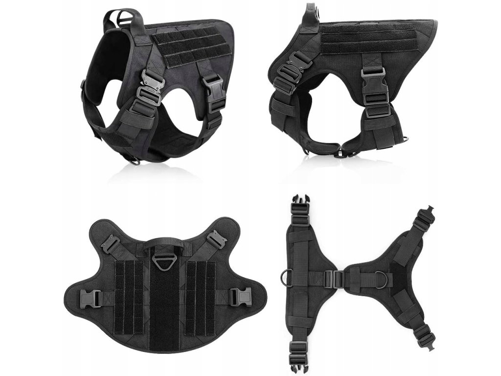 Uprząż została zaprojektowany przez wprowadzenie 2 indywidualne komponentów razem, oferta 4 pozycji regulowany (ramię, klatka piersiowa), łatwe i wolne dostosować w odpowiednio, upewnij się, że ta uprząż jest dobrze pasuje do swojego psa.